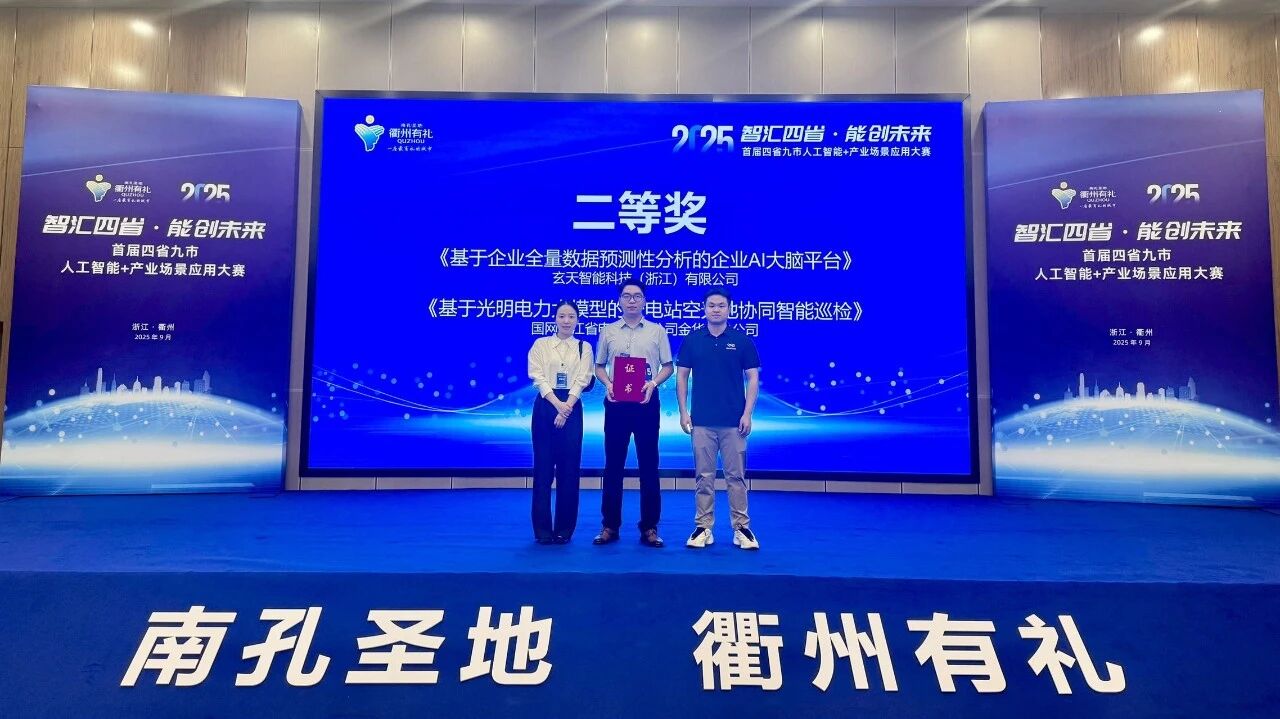 玄天智能斩获首届四省九市AI产业场景大赛二等奖。